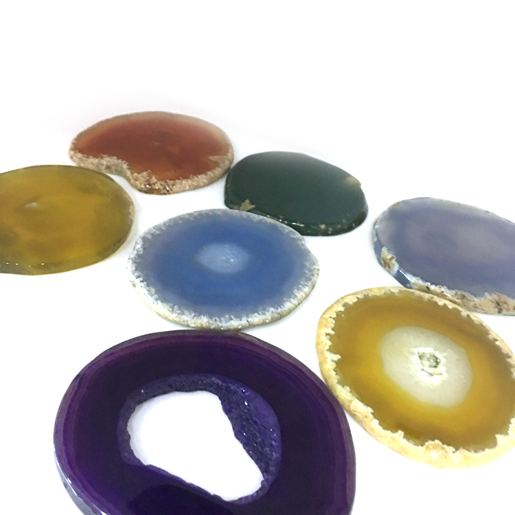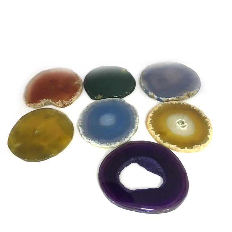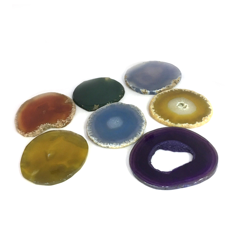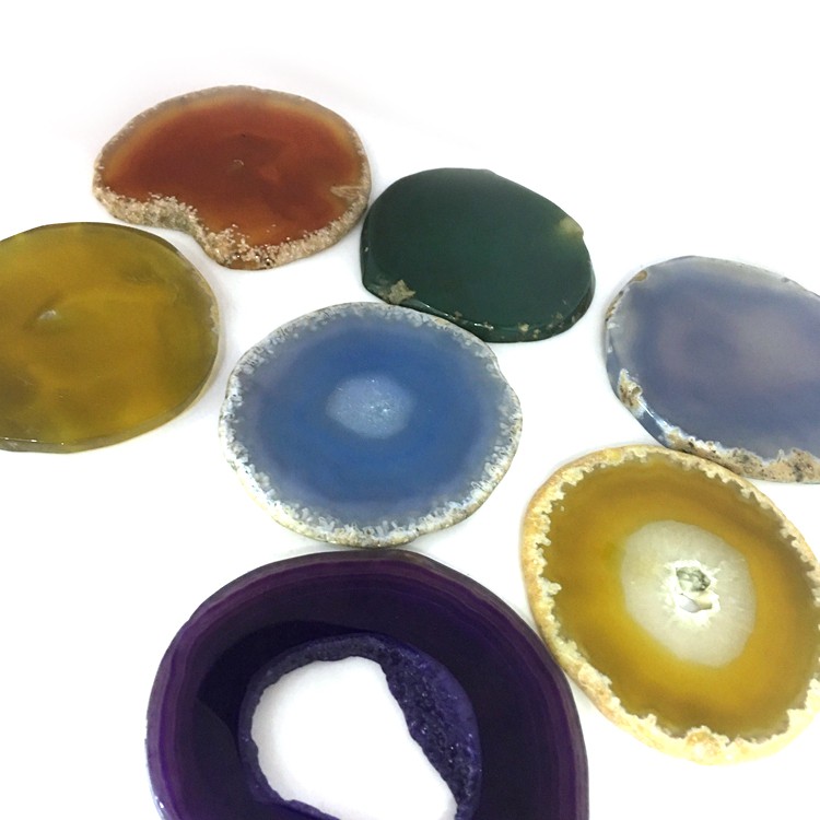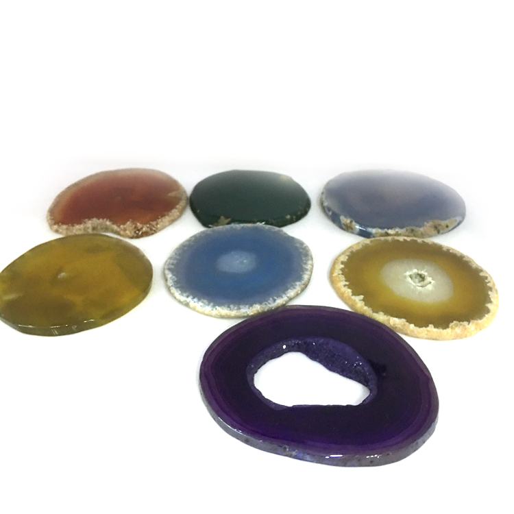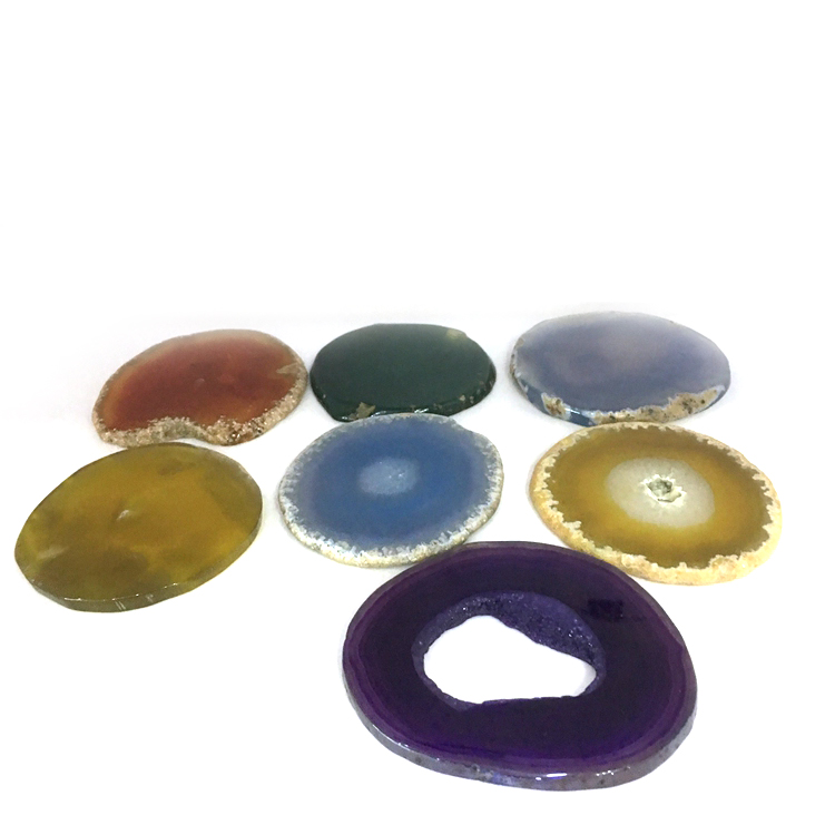 HomeProductsagate > agate slice > Amazon Bestseller Hot Selling Natural Blue Black Agate Slice Holder Coaster with Gold Trim for Drinks Cup Holder Gift Set